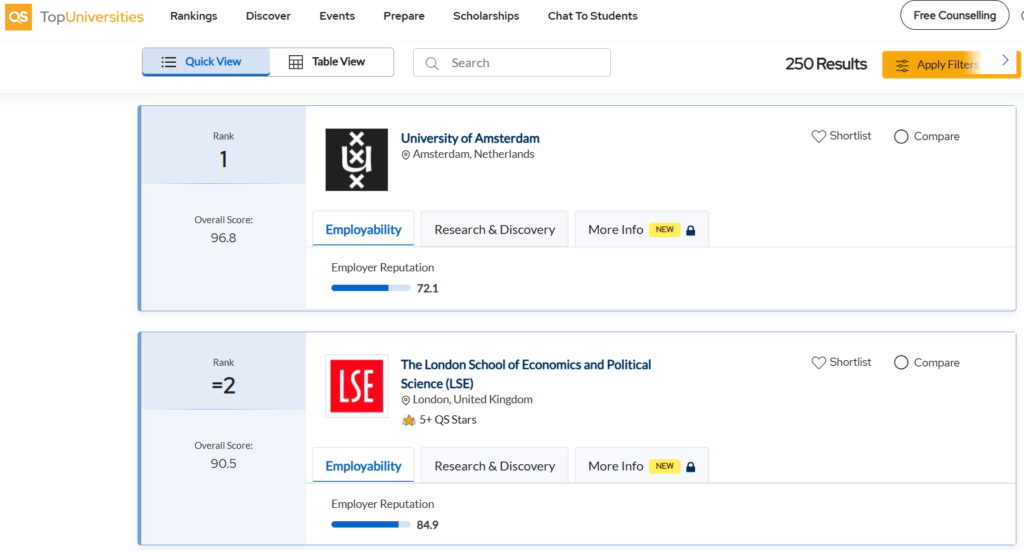 LSE is ranked globally in the QS World University Rankings: